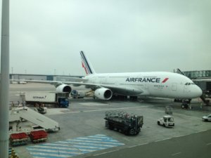 Párizsi átszállással repültünk New Yorkba, az Air France légitársasággal. Az emeletes Airbus számomra hatalmas élmény volt; a több, mint 500 utast úgy nyelte el a gép, hogy nem érzékeltünk “tömeget”, és nagyon kényelmes helyet kaptunk, persze az economy class-on (turistaosztály).
