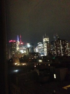 Este New York várt ránk, igazi díszkivilágításban. Szállás lokációja tökéletes, kilátás a felhőkarcolókra a 8. emeleti szobából. (Holiday Inn Express Midtown West-Manhattan)